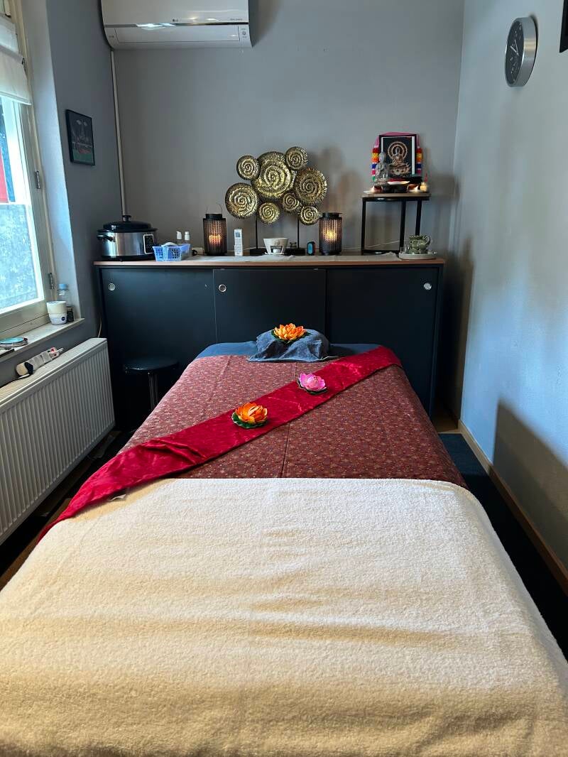 U wordt ontvangen in een eigen salon aan huis met een verwarmd massagebed en airco waar u goed kunt ontspannen.